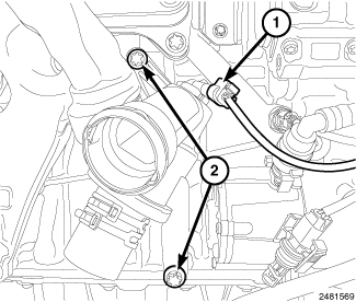 1. Install the left knock sensor (2). Tighten bolt (1) 20 Nm (177 in. lbs.).