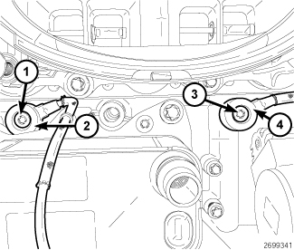 1. Install the right knock sensor (4). Tighten bolt (3) to 20 Nm (177 in. lbs.).
