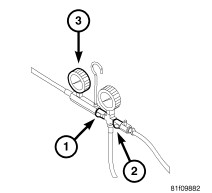 2. Read the Fuel Pressure Gauge (3) and record the reading. The fuel pressure specification is 407 kPa +/- 34 kPa (59 psi +/- 5 psi).