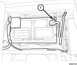 4. Remove the Powertrain Control Module (PCM) retaining bolt (1).