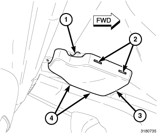 4. Carefully install the humidity sensor cover (3) onto the sensor bracket (1). Make sure the four retaining tabs (2 and 4) are fully engaged to the bracket