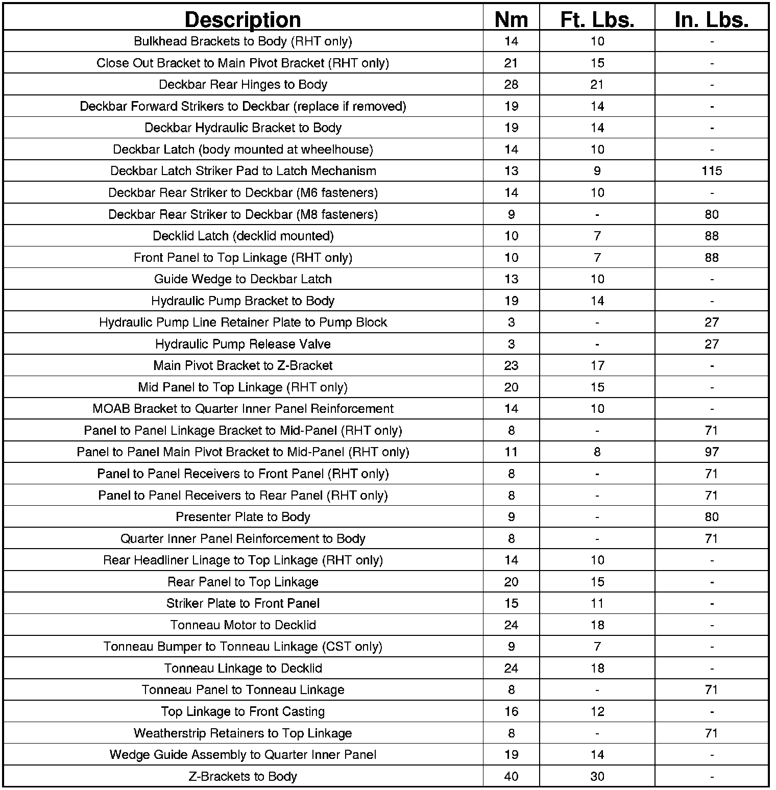 FASTENER TORQUE