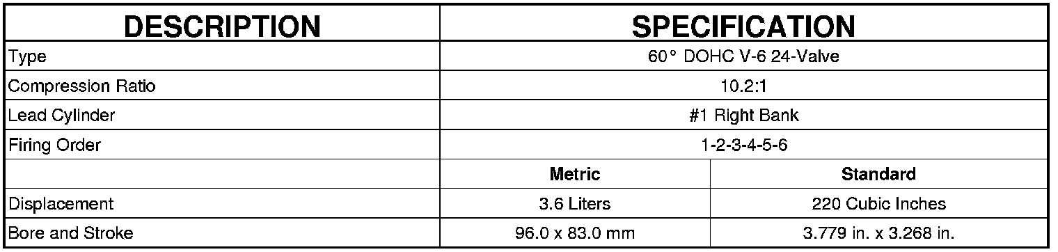 Home >> Dodge and Ram >> 2012 >> Avenger V6-3.6L >> Repair and Diagnosis >> Specifications >> Mechanical Specifications >> Engine >> System Specifications >> Engine Specifications