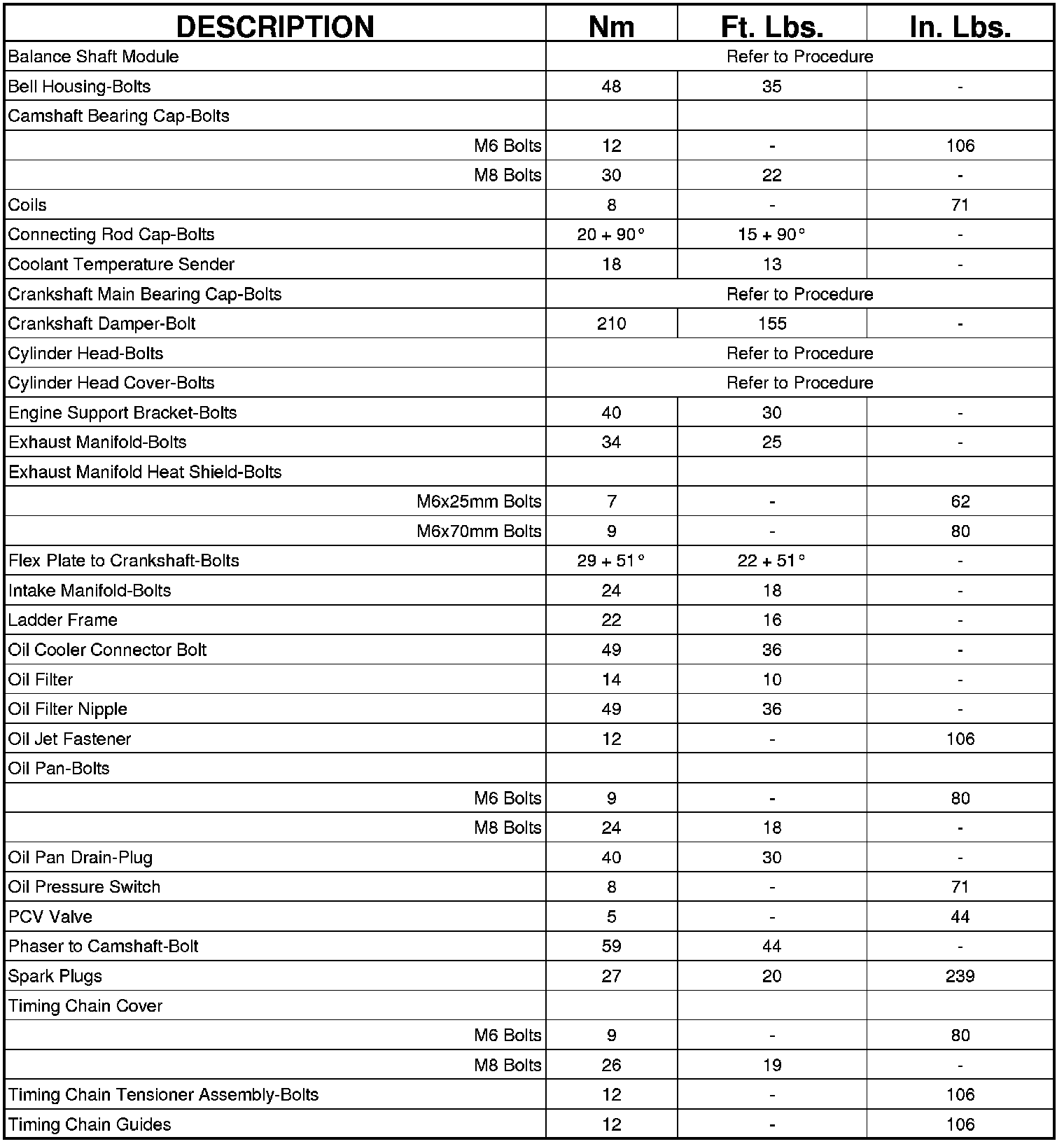 Engine Torque Specifications