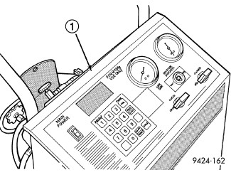 When servicing the A/C system, an R-134a refrigerant recovery/recycling/charging station (1) that meets SAE standard J2788 must be used. Per SAE standard J2788, refrigerant recovery stations must recover 95% of the refrigerant system within 30 minutes at 21.1° C (70° F) and be able to measure the amount of refrigerant removed from the system to an accuracy of 28 grams (1 oz.). See the operating instructions supplied by the equipment manufacturer for proper care and use of this equipment.