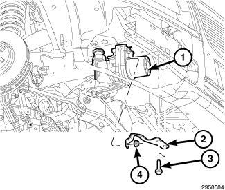 NOTE: If equipped with Electro Hydraulic Power Steering (EHPS), the bolts (3) for the EHPS front mounting bracket (2) must be loosened before shifting the cradle. After the cradle has been shifted and the cradle mounting fasteners have been tightened to the correct specification, tighten the EHPS mounting bracket bolts to the correct specification.