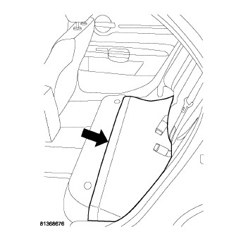 2. Remove the auxiliary fuel pump module plastic access cover (1) from the floor pan.