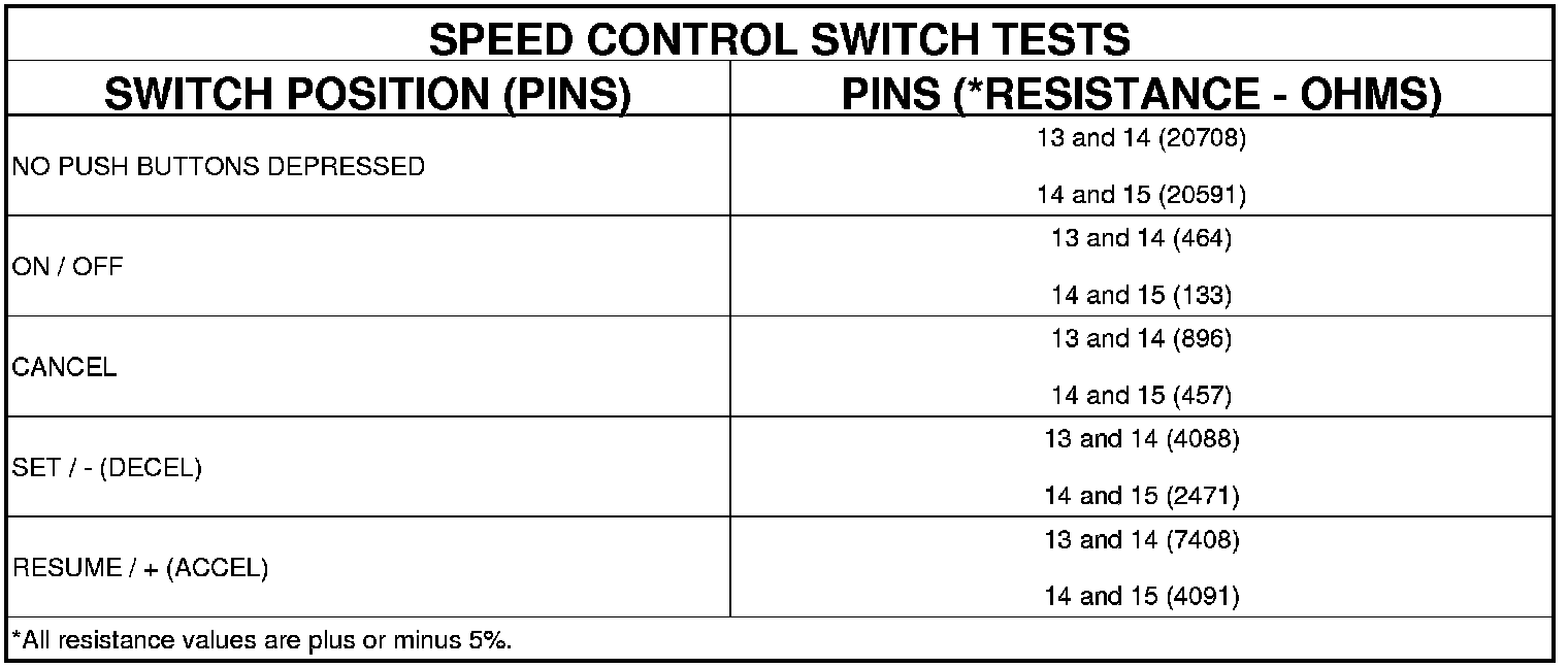 3. Using an ohmmeter, test the resistance between the terminals of the switch as shown in the Speed Control Switch Tests table.