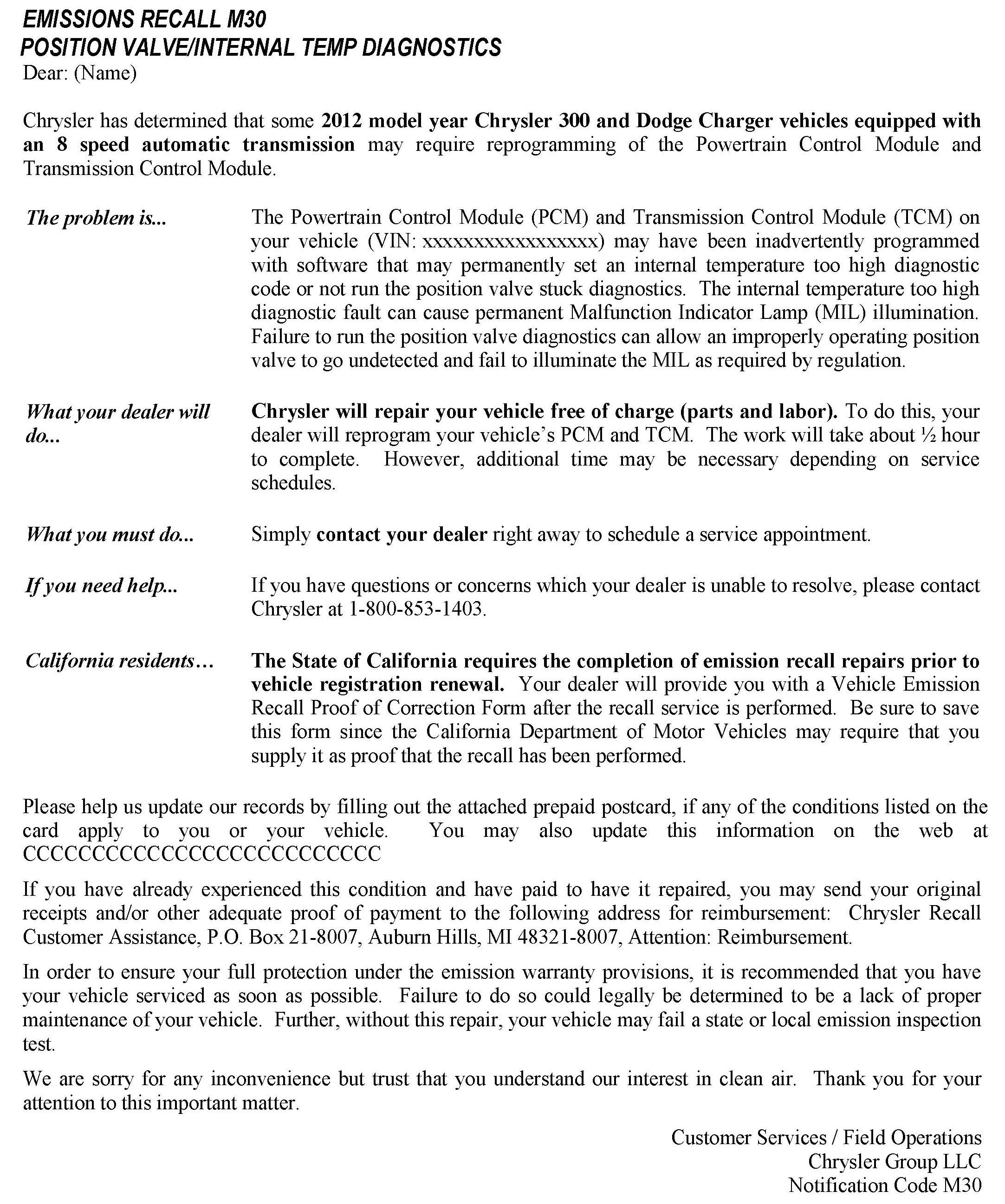 Recall - PCM/TCM Update For MIL Function