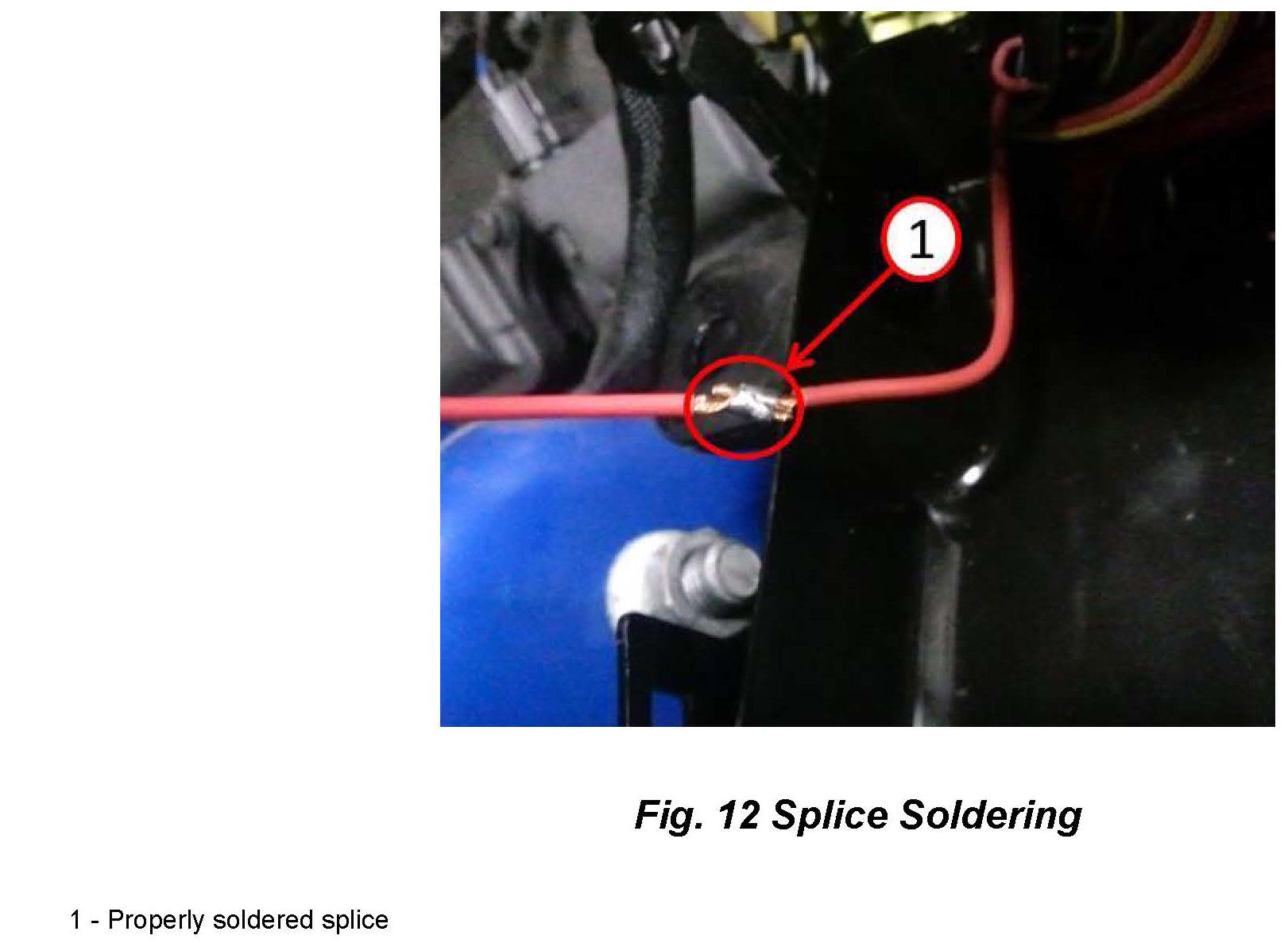 18. Center the heat shrink tube evenly over the splice. Apply heat to shrink the tube and create a seal (Fig 13).