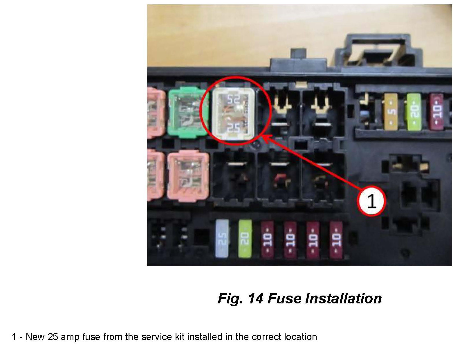 21. From Service kit insert the 25 Amp White Fuse into fuse location 6 (Fig. 14).
