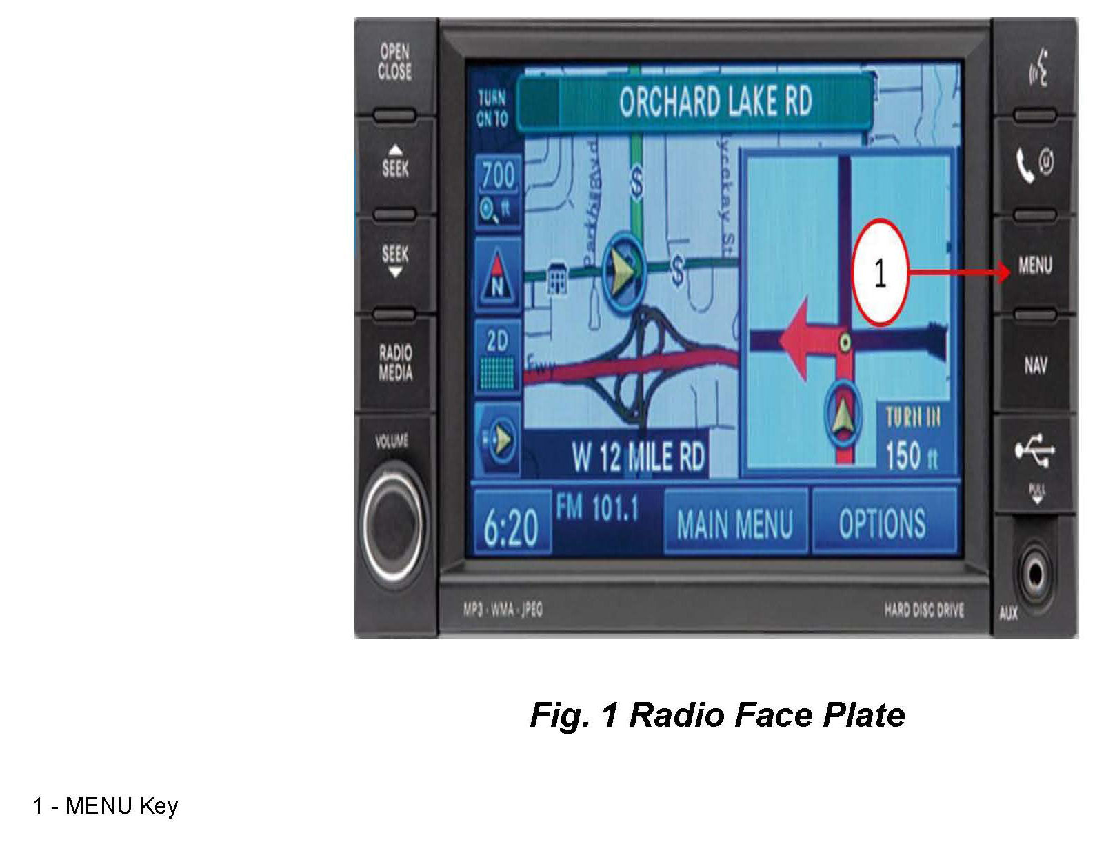 3. Press the MENU key (Fig. 1).