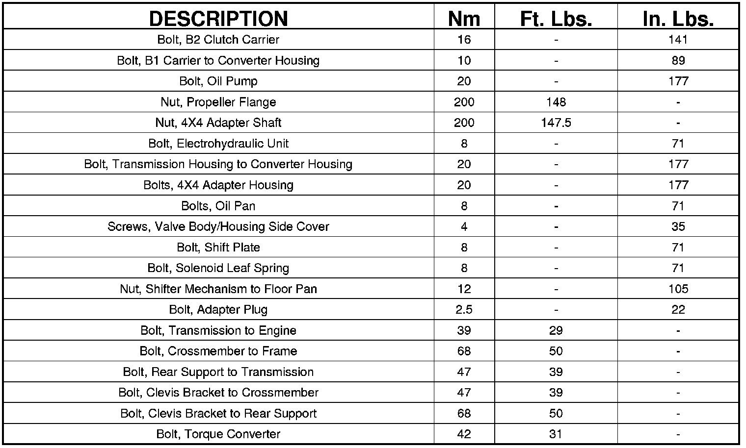 TORQUE SPECIFICATIONS