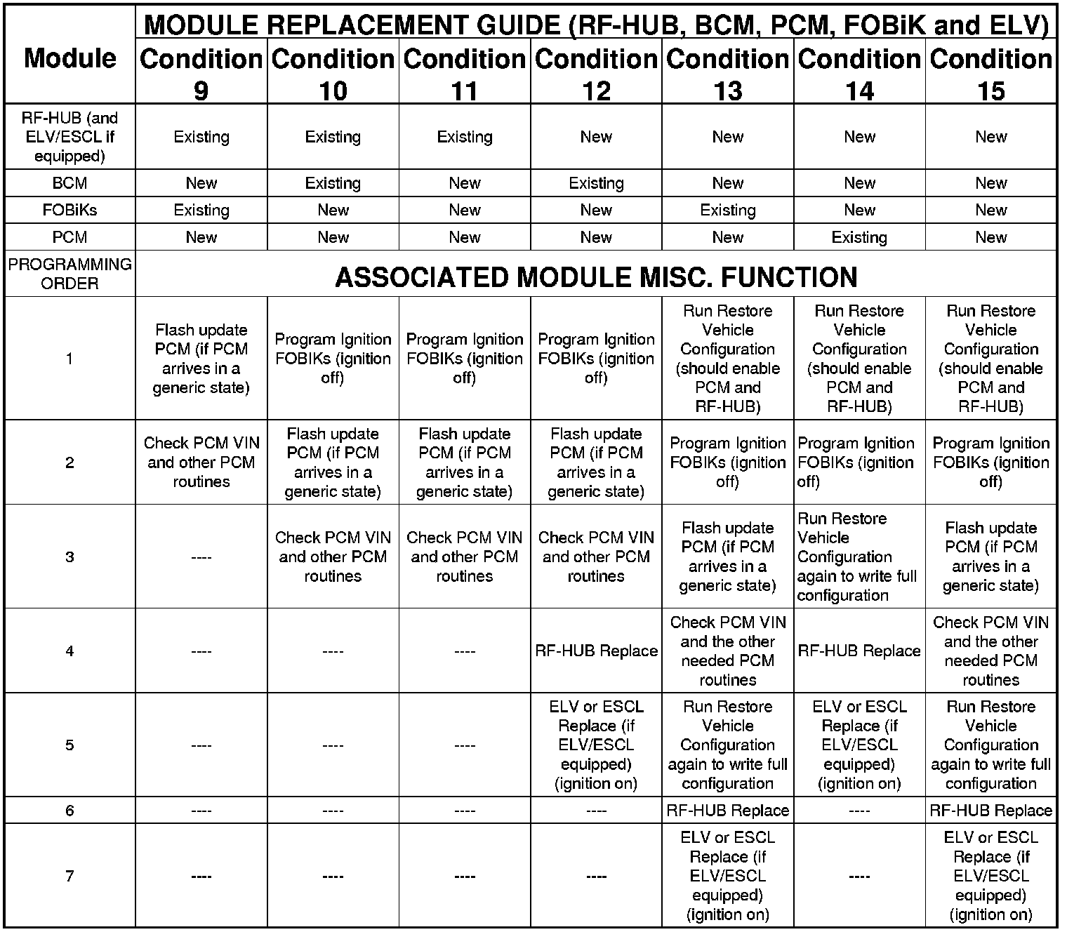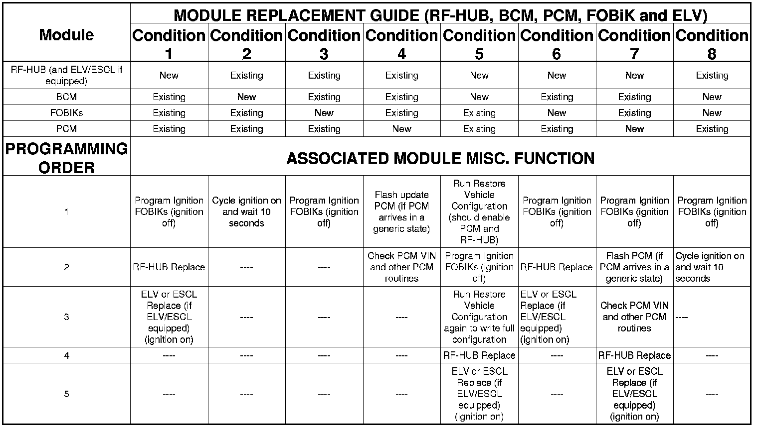 , PCM, FOBiK and ELV REPLACEMENT AND PROGRAMMING ORDER GUIDE