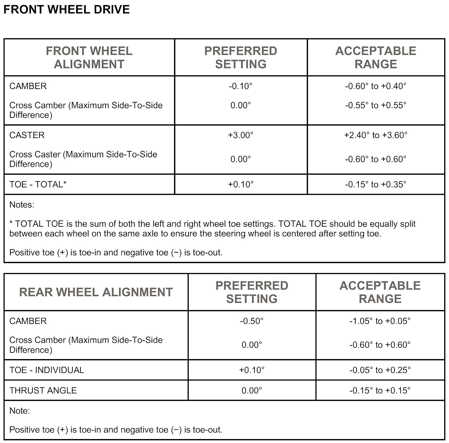 All wheel alignments are to be set with the vehicle at curb height.