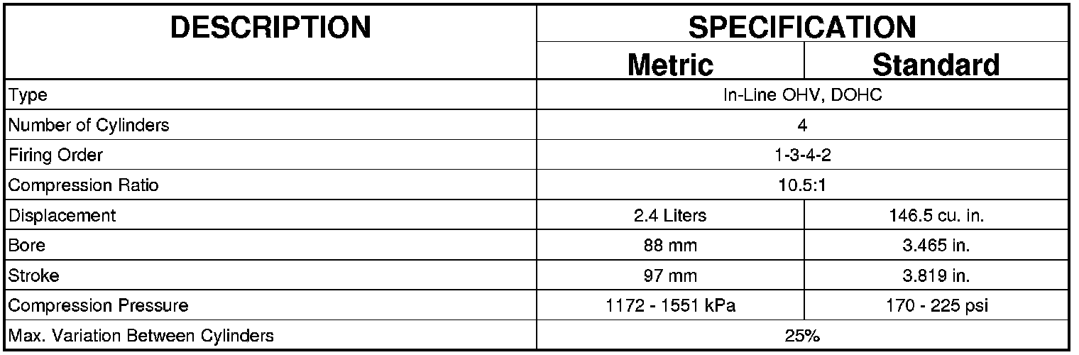 Home >> Dodge and Ram >> 2012 >> Journey FWD L4-2.4L >> Repair and Diagnosis >> Specifications >> Mechanical Specifications >> Engine >> System Specifications >> Engine Specifications