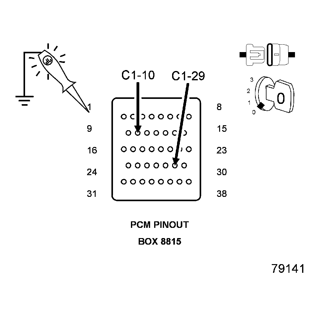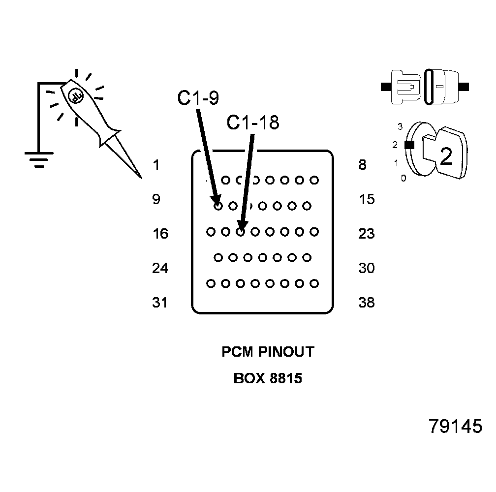 2. Using a 12 Volt test light connected to ground, check the PCM Fused Ignition Switch circuits.