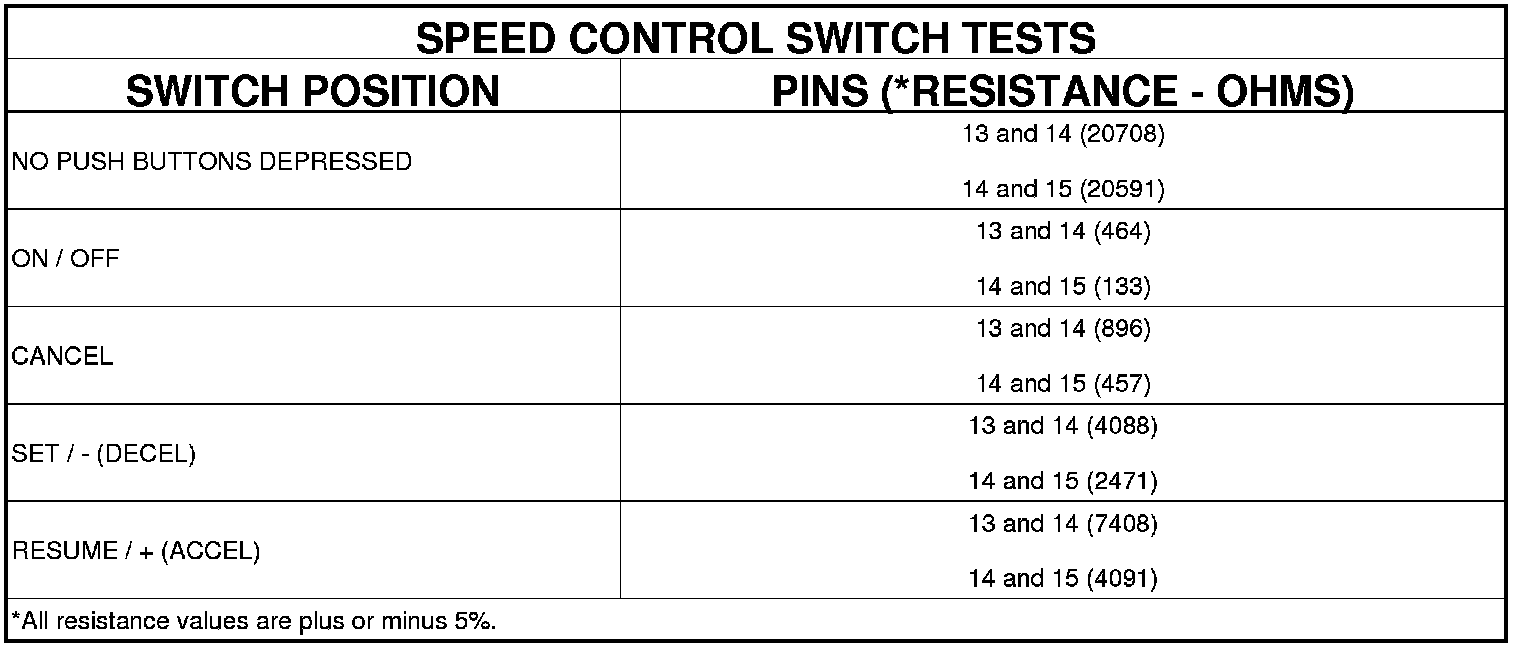 3. Using an ohmmeter, test the resistance between the terminals of the switch as shown in the Speed Control Switch Tests table.