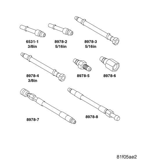 3. Install the appropriate Fuel Line Adapters / Fitting from the Gas and Diesel Fuel Pressure/Decay Tester (8978A).