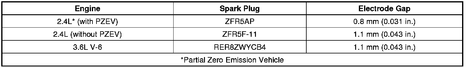 Spark Plug Specifications