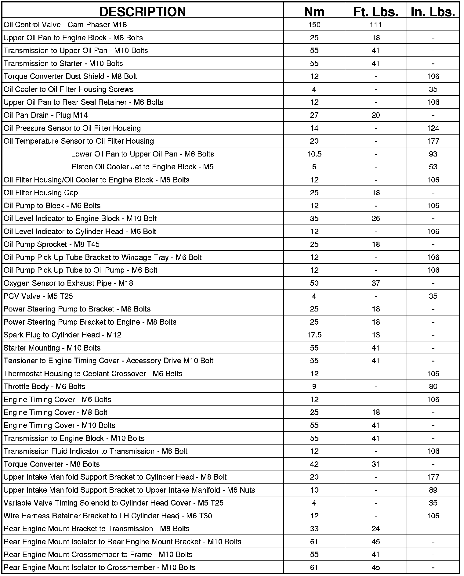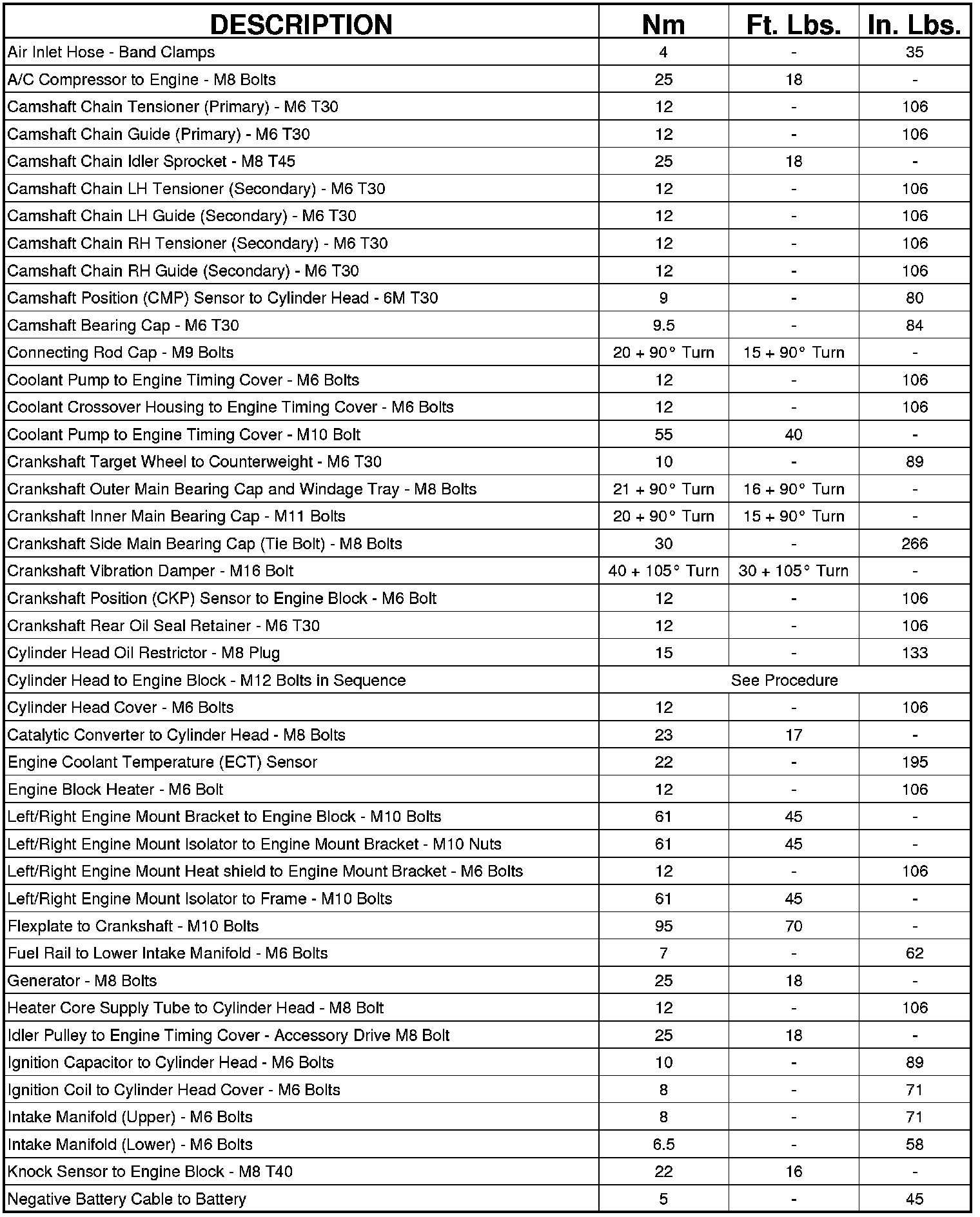 Engine Torque Specifications