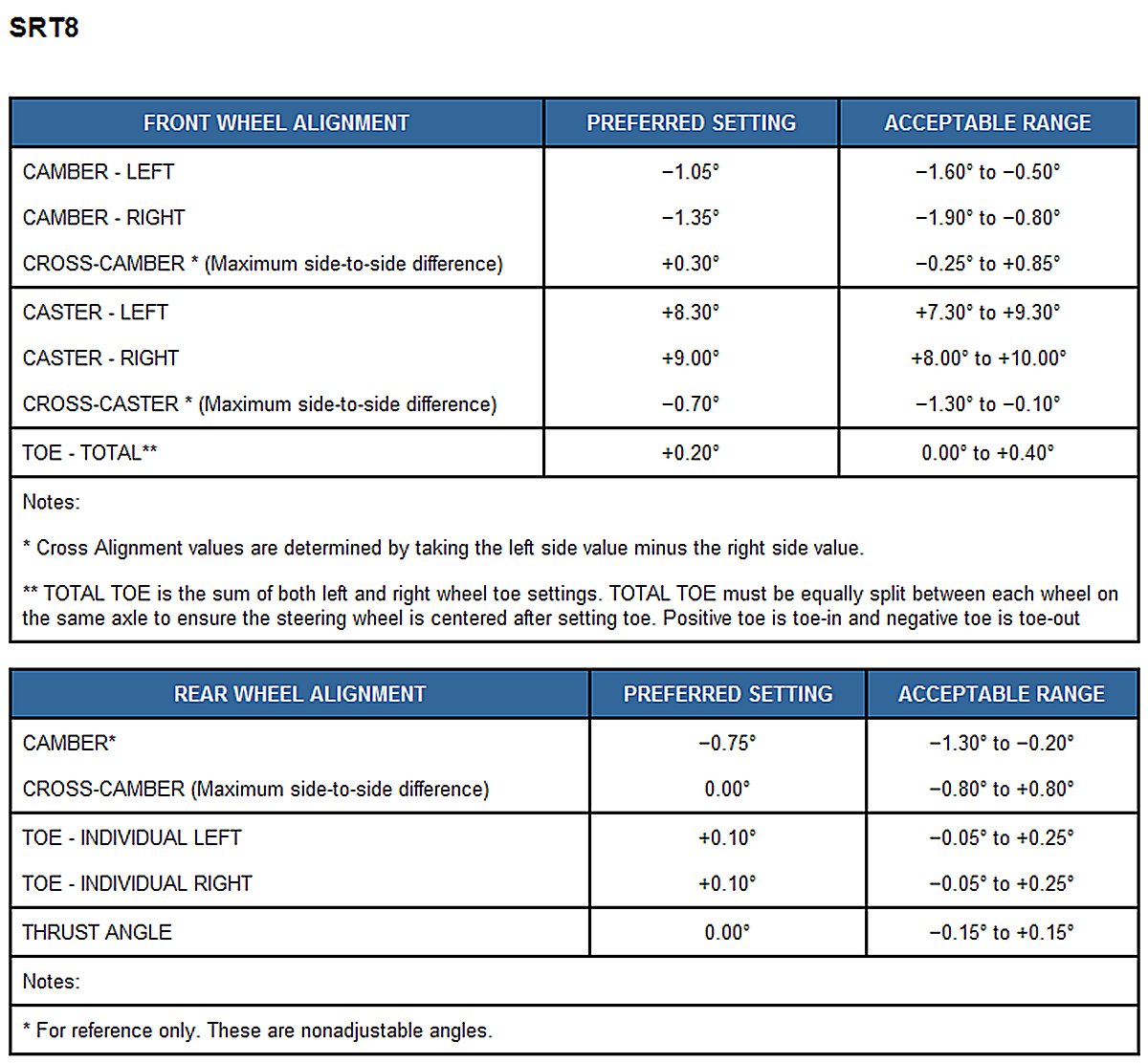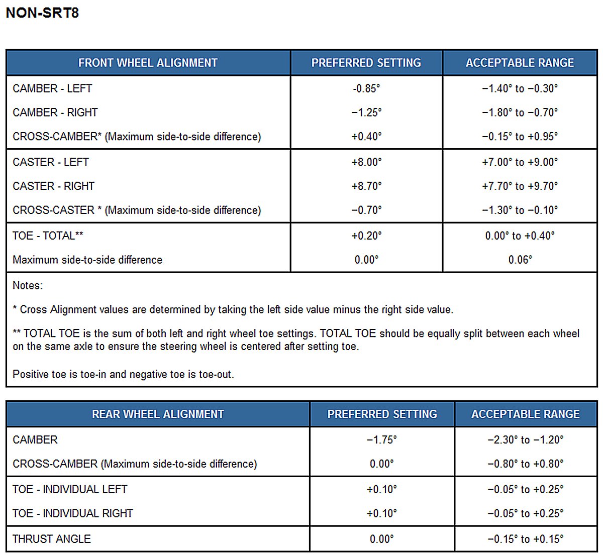 NOTE: All wheel alignments are to be set at curb height.