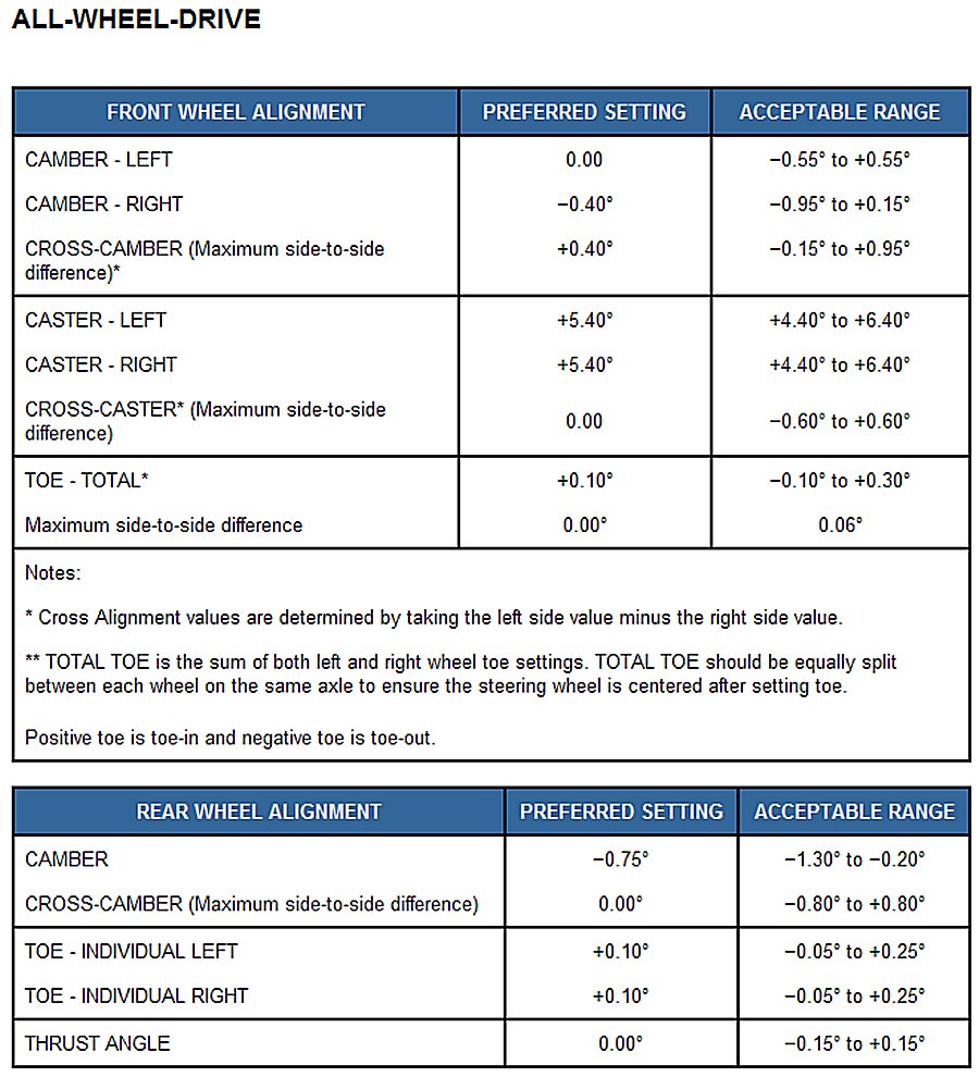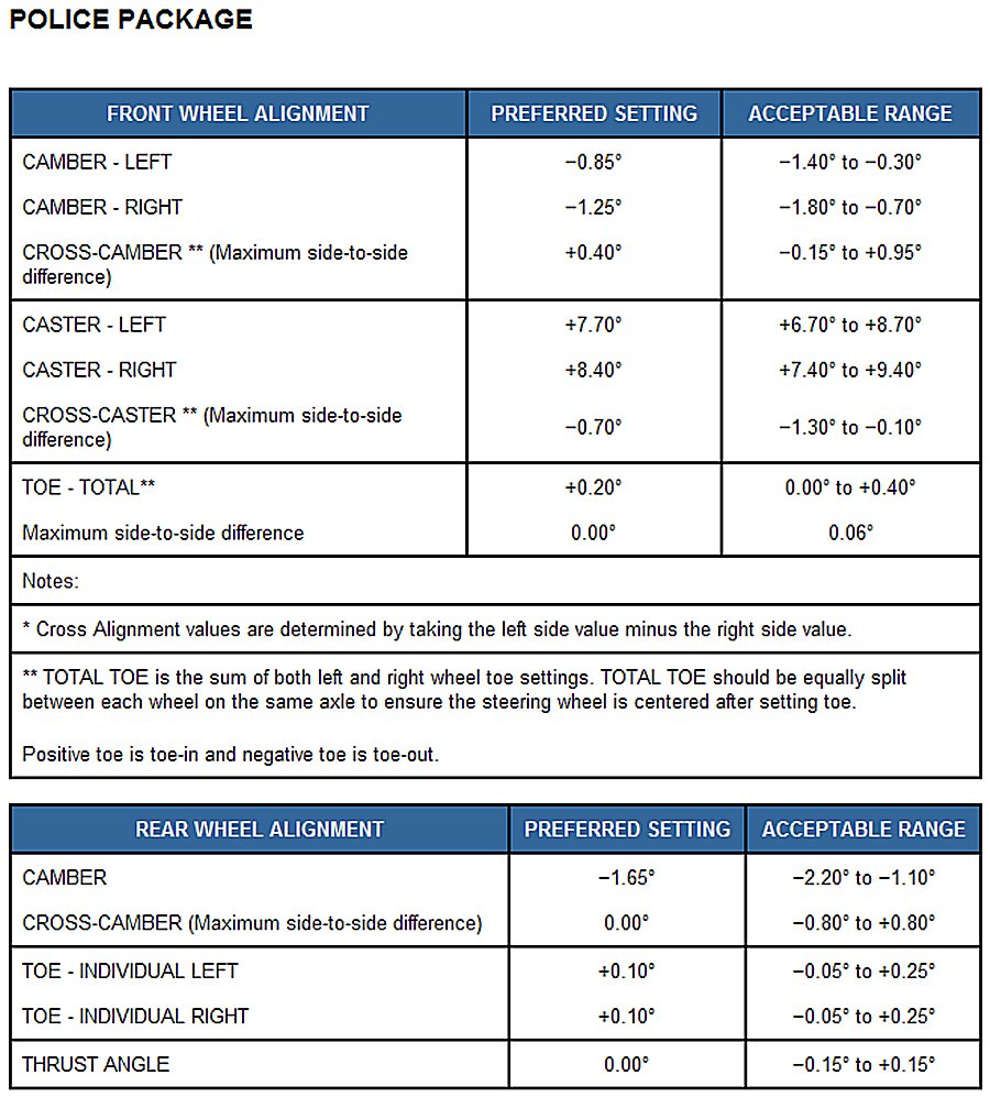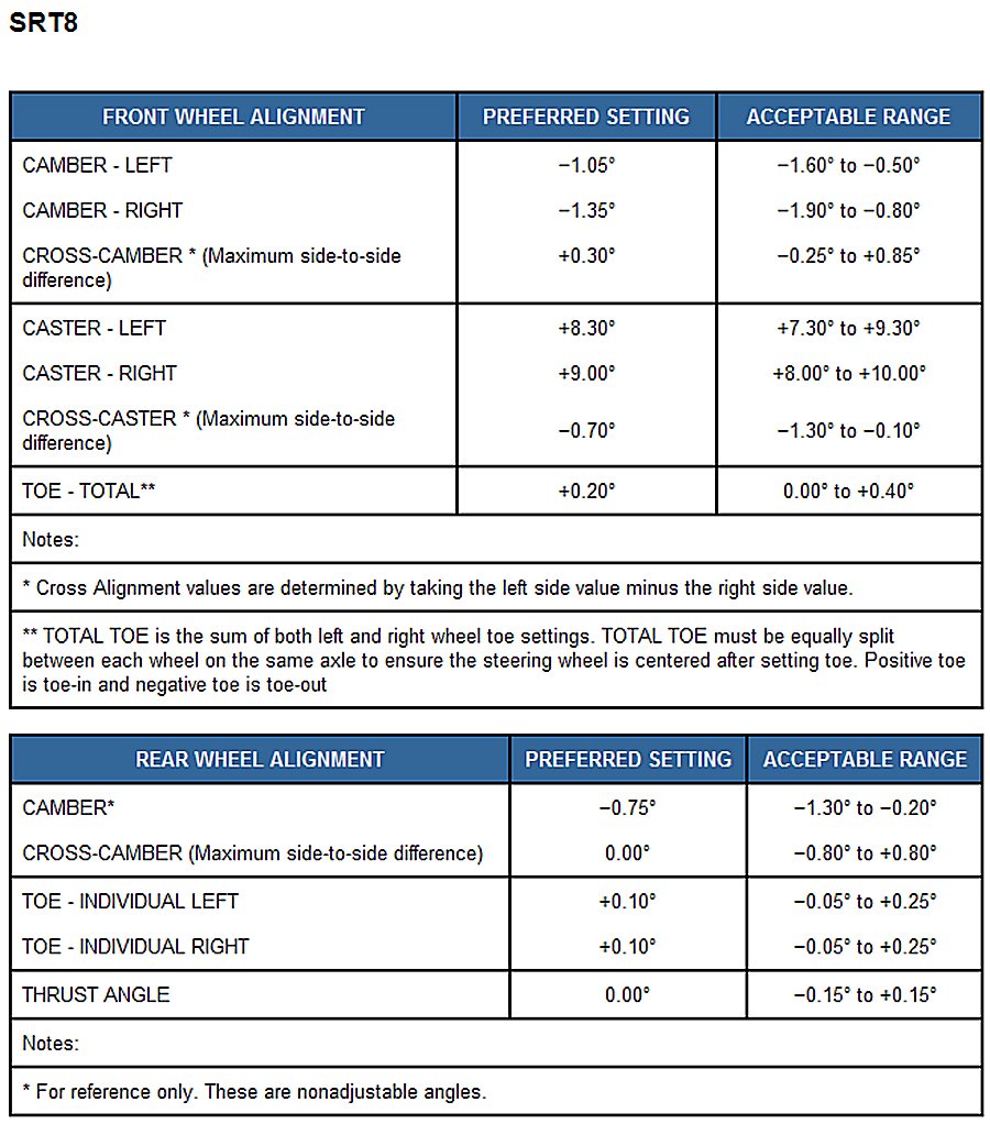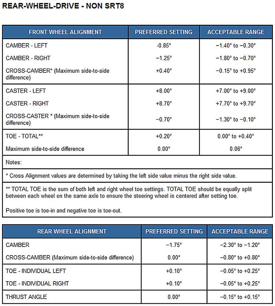 Home >> Dodge and Ram >> 2013 >> Charger AWD V6-3.6L >> Repair and Diagnosis >> Specifications >> Mechanical Specifications >> Alignment >> Wheel Alignment