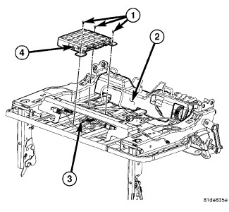 3. Remove the push-pin retainers (1) that secure the bracket (4) to the seat pan (2).