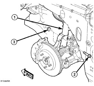 The strut clevis-to-knuckle bolts are installed differently on each side. Left hand side bolts are to be installed from vehicle rear to front. Right side bolts are to be installed from vehicle front to rear.