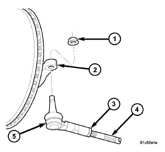 2. Loosen jam nut (3) at inner-to-outer tie rod connection.
