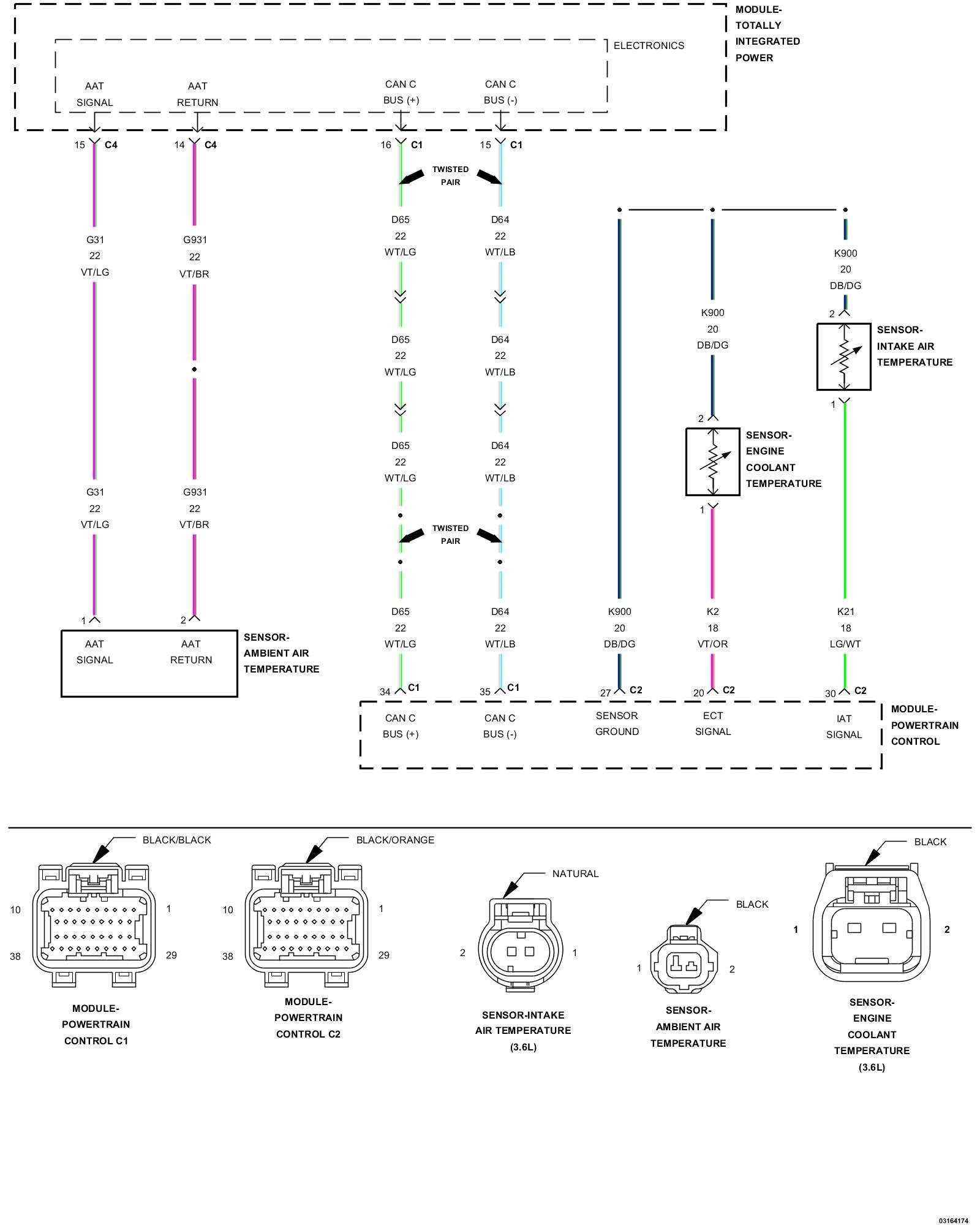 1. Using the wiring diagram/schematic as a guide, inspect the wiring and connectors between the Engine Coolant Temperature Sensor and the Powertrain Control Module (PCM).