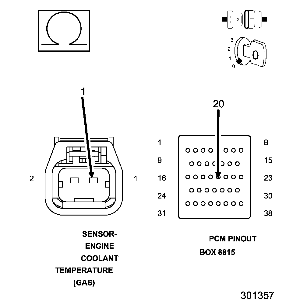 1. Using the wiring diagram/schematic as a guide, inspect the wiring and connectors between the Engine Coolant Temperature sensor(s) and the PCM.