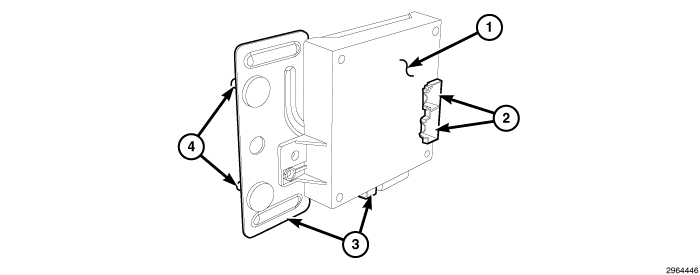 The Passive Entry Module (PEM) (1) is the primary component of the Passive Entry (PE) and Keyless Go (KG) systems. The PEM contains both the Central Processor Unit (CPU) and Controller Area Network (CAN) data bus transceiver of the PE and KG systems, and is sometimes alternately referred to as the PEKG module or receiver. Concealed within the molded black plastic PEM housing is the printed circuit board and the other electronic circuitry of the module.