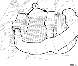 4. Unlock and disconnect the electrical connectors (1) from the powertrain control module (PCM).