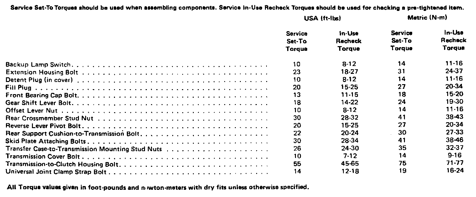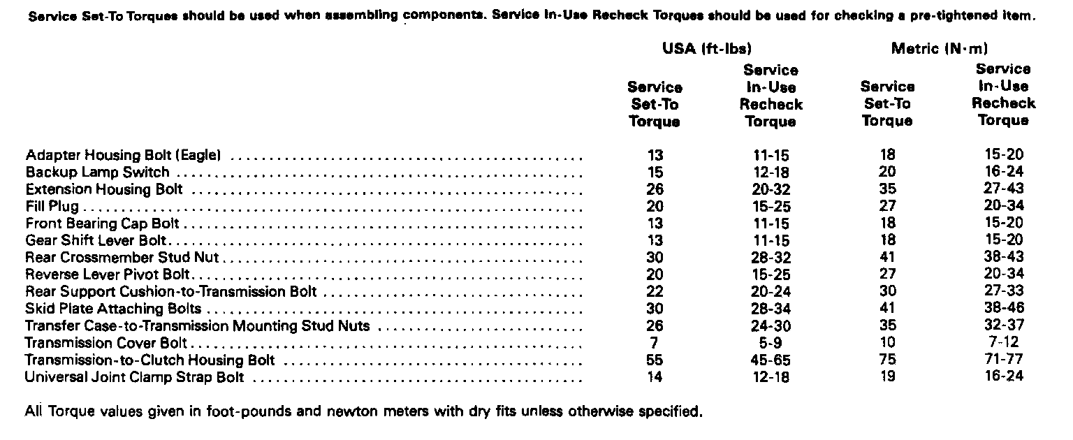 Torque Specifications