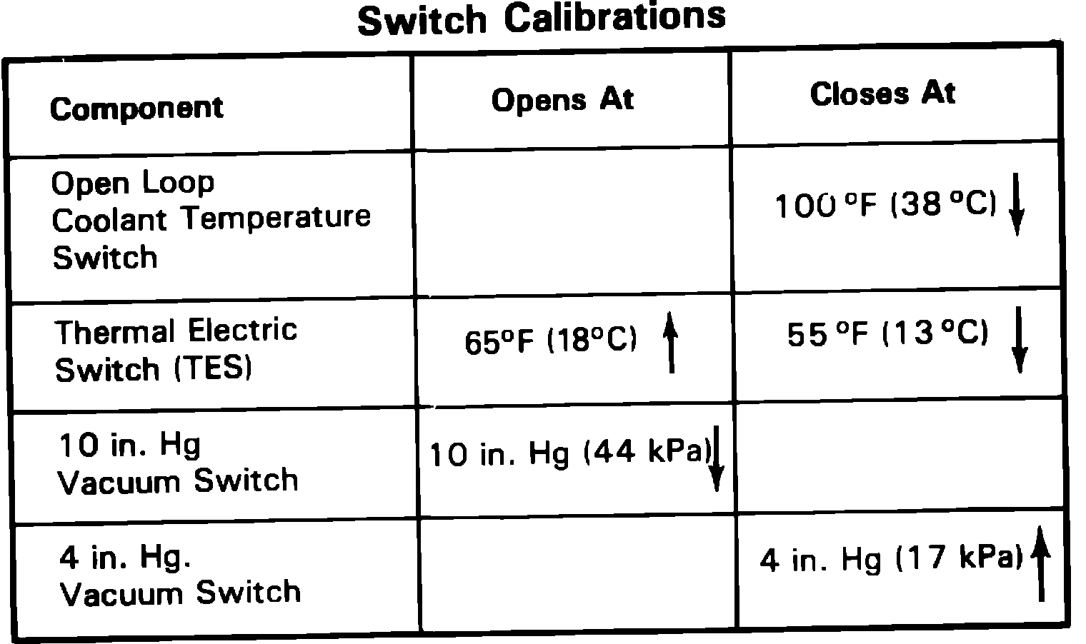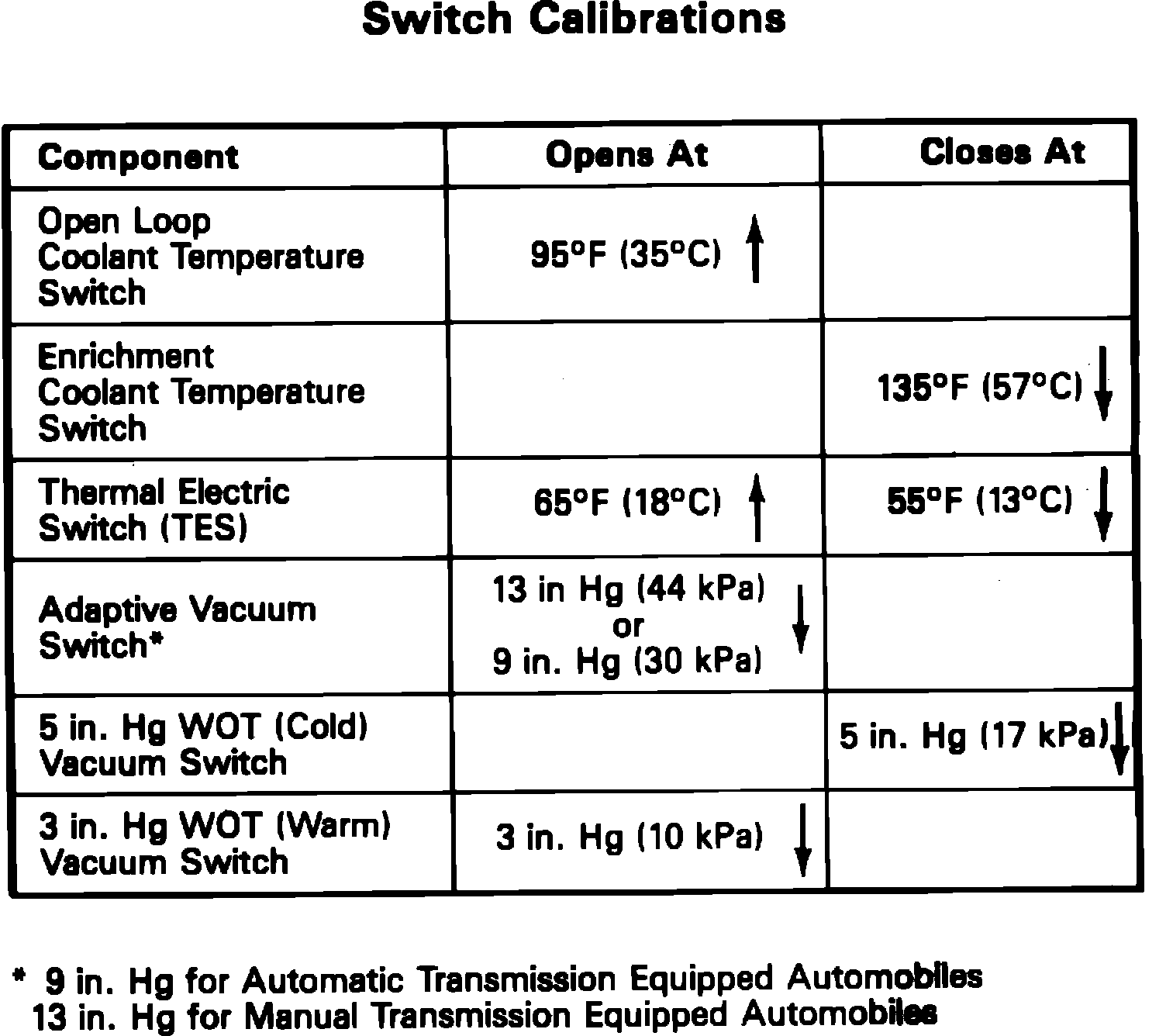 This mode of operation occurs whenever the coolant temperature is below the calibrated switching temperature of the open loop coolant temperature switch, Figs. 11a and 12a, and the wide open throttle vacuum switch (cold) has been closed due to a decrease in manifold vacuum. When the engine is in this mode of operation, the mixture control (MC) solenoid provides a rich air/fuel mixture for cold engine operation at wide open throttle.