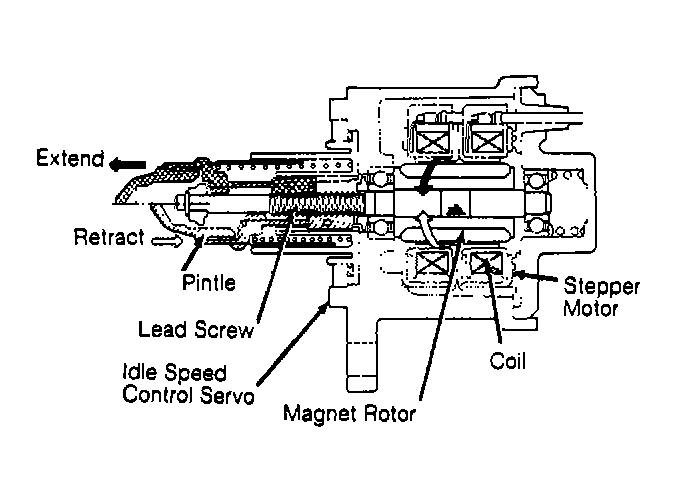 On 2.0L engines, idle position switch is located on throttle body. On 1.8L engines, idle position switch is part of idle speed control servo, located on throttle body. See Figure . Idle position switch is a contact-type switch, which detects operation of accelerator pedal and sends signal to ECU. Idle position switch also serves as a throttle stop screw.