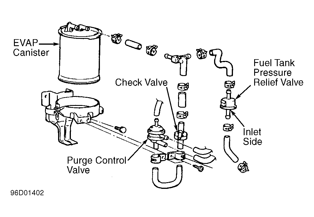 - With no vacuum applied, air should pass through purge control valve. Apply at least 8 in. Hg of vacuum on purge control valve. Air should now pass through purge control valve. Remove vacuum pump from vacuum port.