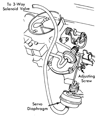 4. If not, adjust engine speed by turning adjusting screw on servo diaphragm throttle lever until proper speed is obtained. See Fig 1. Reconnect all hoses to original position.