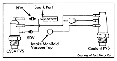 3. With engine temperature between 125°F and 235°F, ported vacuum should be delayed as throttle is opened, and fall with throttle closing. If vacuum is not delayed as throttle is opened, replace SDV. If vacuum reading in steps  2 and 3)  are identical (same or no delay), CSSA PVS is defective.