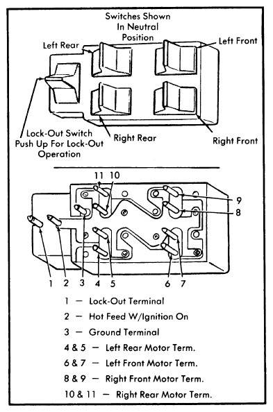 Thunderbird, LTD II and Cougar models use two single switches as a master switch, instead of a multiple master switch. Switches are tested using single window switch test procedures.