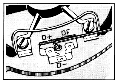 - The diodes may be tested at this point, prior to further disassembly. Care should be exercised with insulating bushings under positive diode carrier. To remove negative carrier, extract threaded studs. When one rectifying diode has been damaged due to short circuiting, the three complementing diodes must be replaced also. Unscrew nuts on both "B+" terminal bolts and lift positive diode carrier (heat sink) up and back.