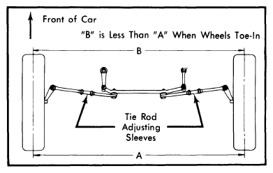 6. If steering wheel is not centered with front wheels in straight ahead position, correct by shortening one tie rod adjusting sleeve and lengthening opposite sleeve. See Fig 2.