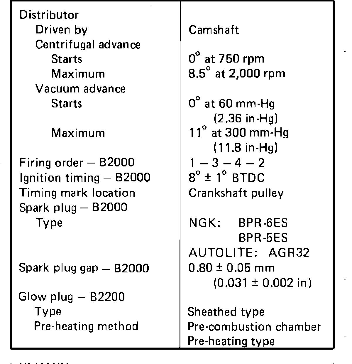 Fig. 8 Ignition system specifications: