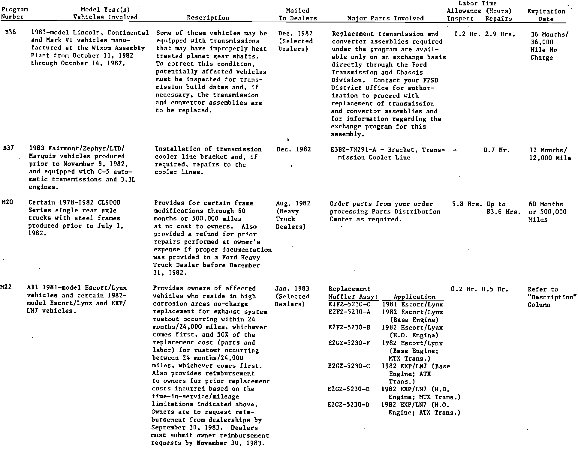 Home >> Ford >> 1982 >> Courier L4-2299cc Courier >> Repair and Diagnosis >> Technical Service Bulletins >> All Technical Service Bulletins >> Recall/Owner Notification Program - Index Update