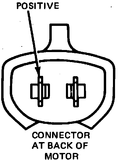 4. Disconnect fan motor electrical connector, then connect a jumper wire from motor ground connection to a known good ground and a jumper wire from battery positive to motor B+ connection, Fig. 5. If motor does not run, replace motor. If motor runs, reconnect electrical connection and proceed to step 5.