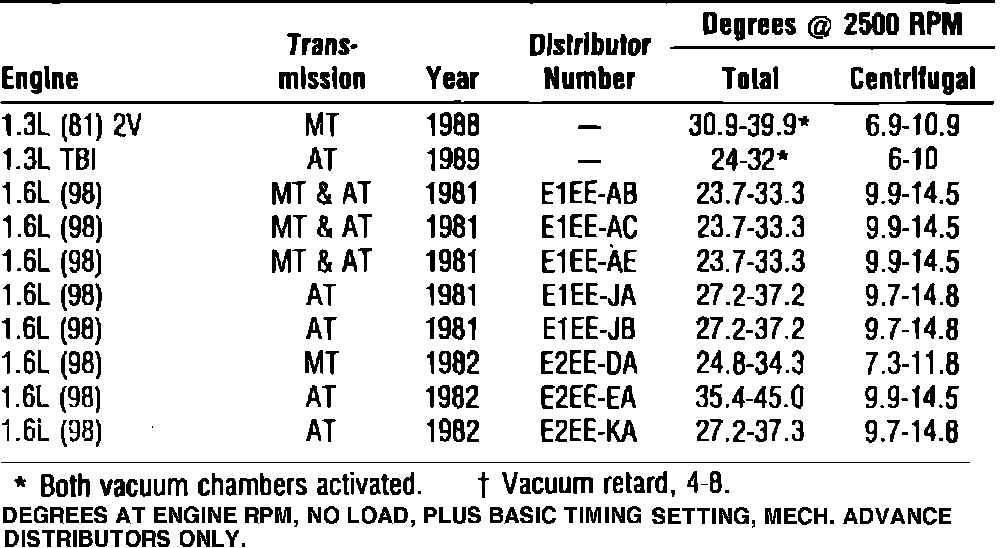 Distributor Timing Advance: