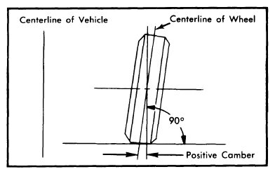 2. When wheels tilt outward at the top (from centerline of vehicle), camber is said to be positive. When wheels tilt inward at the top, camber is said to be negative. Amount of tilt is measured in degrees from vertical.