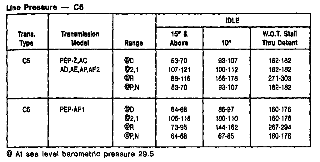 C-5 3-spd A/T, Line Pressure: