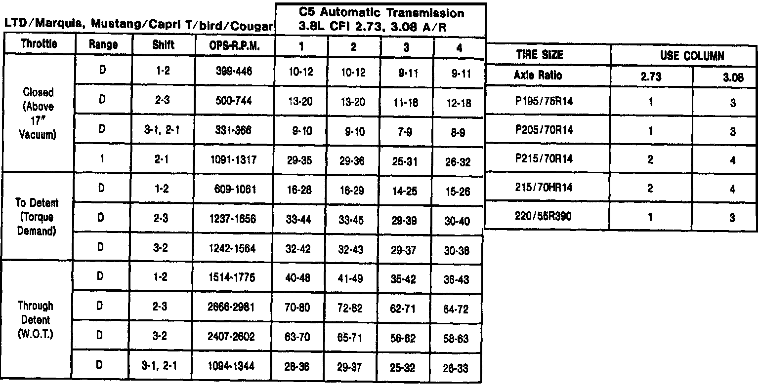 C-5 3-spd A/T, Shift Speeds (3.8L Mustang/Capri):